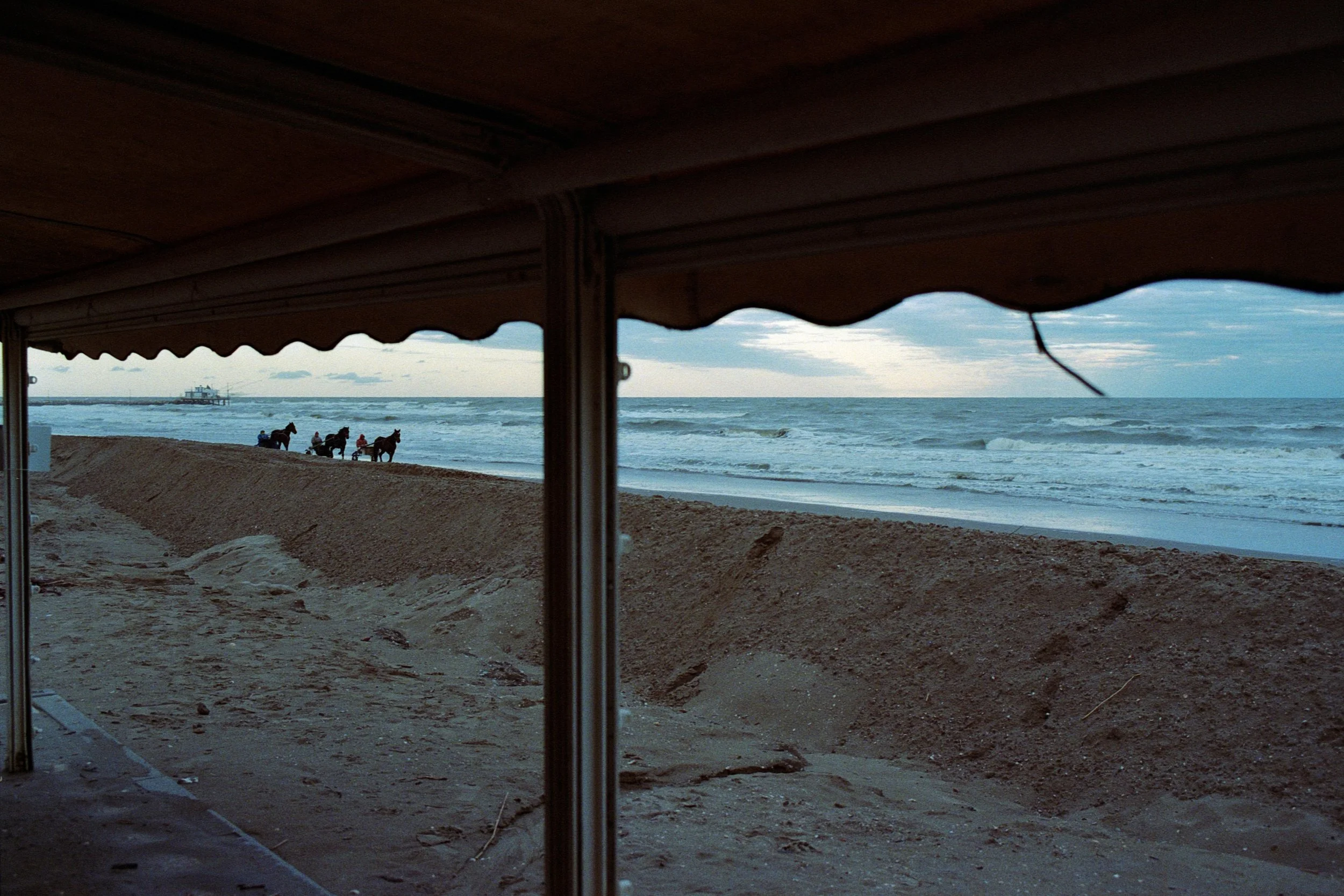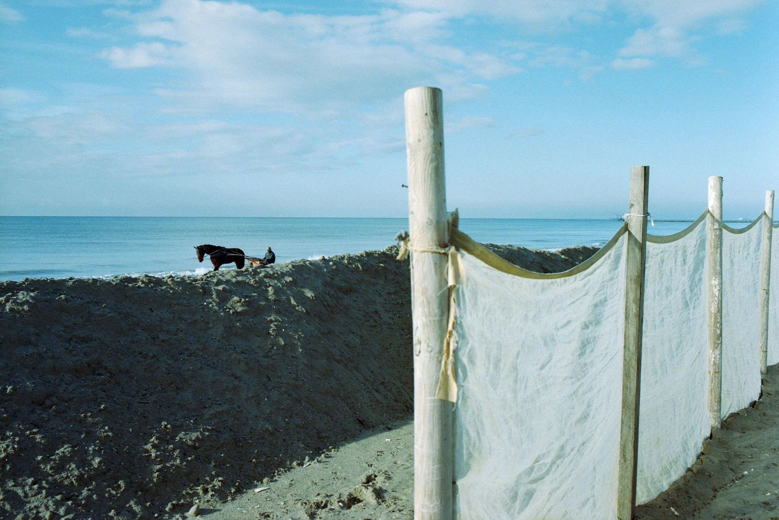 Questa raccolta, divisa in tre capitoli, è stata realizzata nel corso di un lungo soggiorno al mare a Marina Romea, nel periodo tra ottobre e novembre. Visitando la spiaggia abbandonata osservavo comparire ogni tanto, non sempre, queste figure del mito. Le ho fotografate perché mi sembrava di essere l’unico fortunato a cui era concesso vederle. Qualche settimana dopo ho pensato fosse arrivato il momento di presentarmi a quei fantasmi. E li ho conosciuti.
