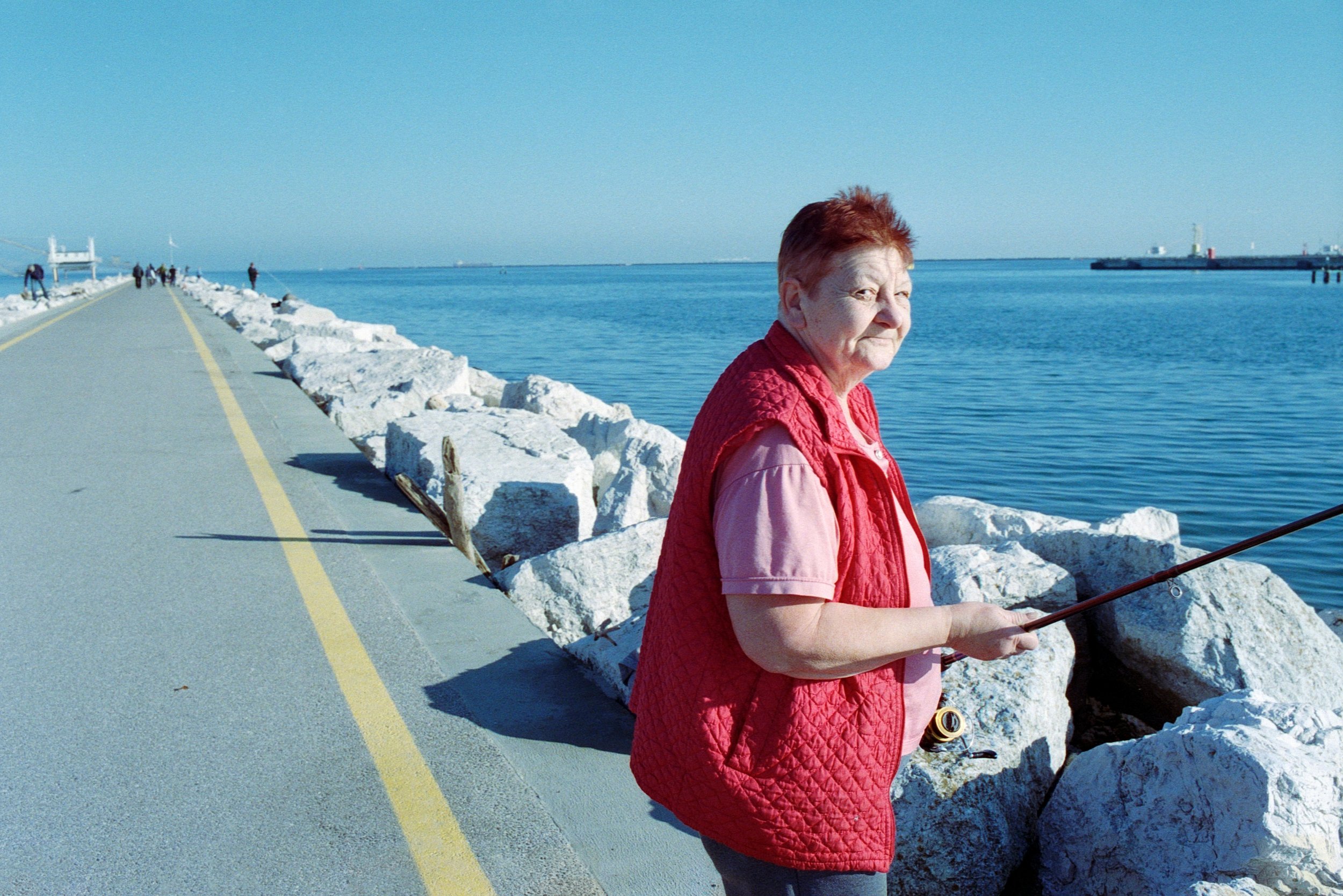 All’ora di pranzo mi sono incamminato spesso sulla lunga diga di Porto Corsini: è un mondo misterioso, abitato da uomini che sorridono. E’ un luogo strano, immerso nel sole e nell’oblio. E’ una strada dritta, che offre inquieti presagi di speranza e di sventura. Scoprireste molto di voi, se provaste a camminare lungo quella diga.